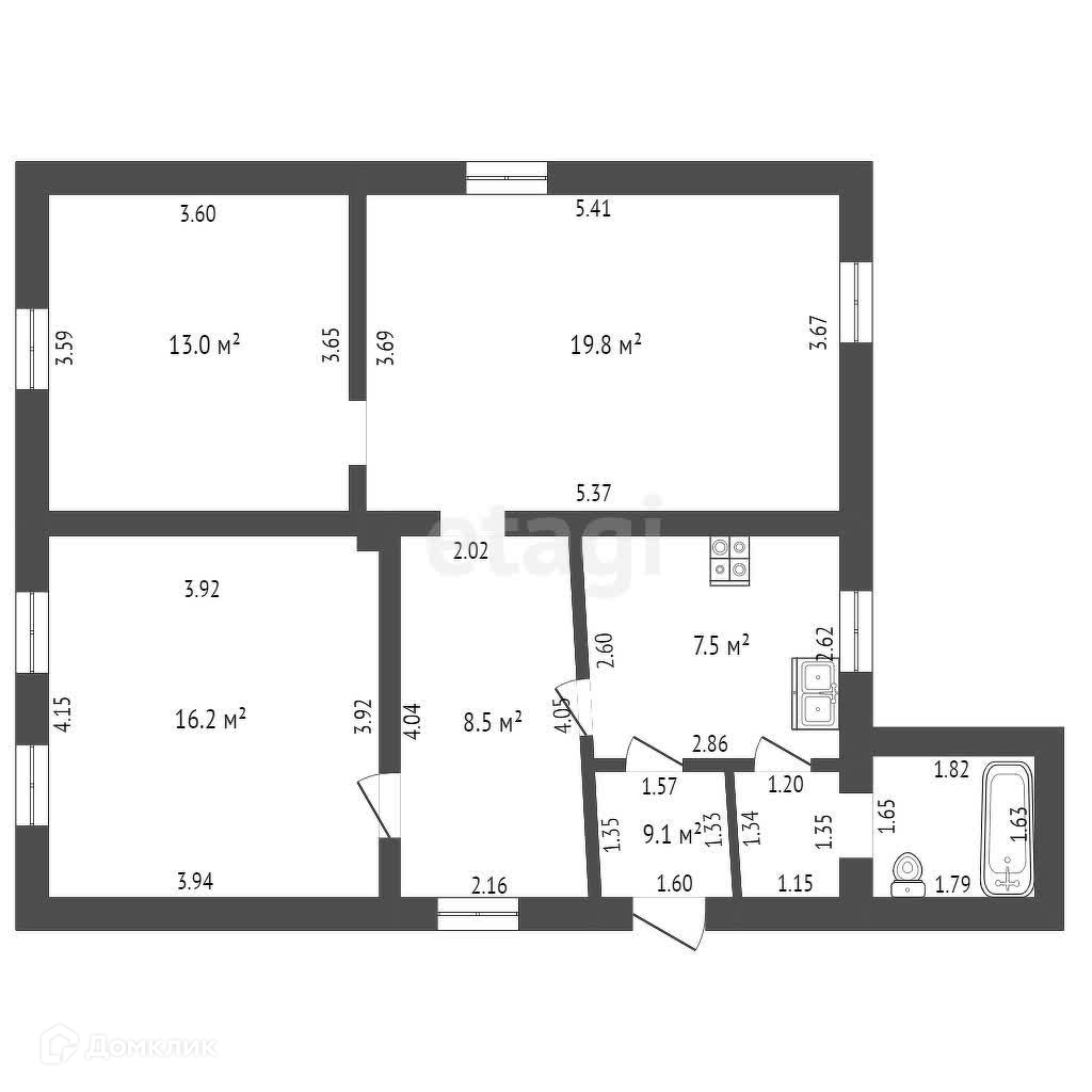 1-этажный дом, 71.7 м2, на продажу в Тамбове