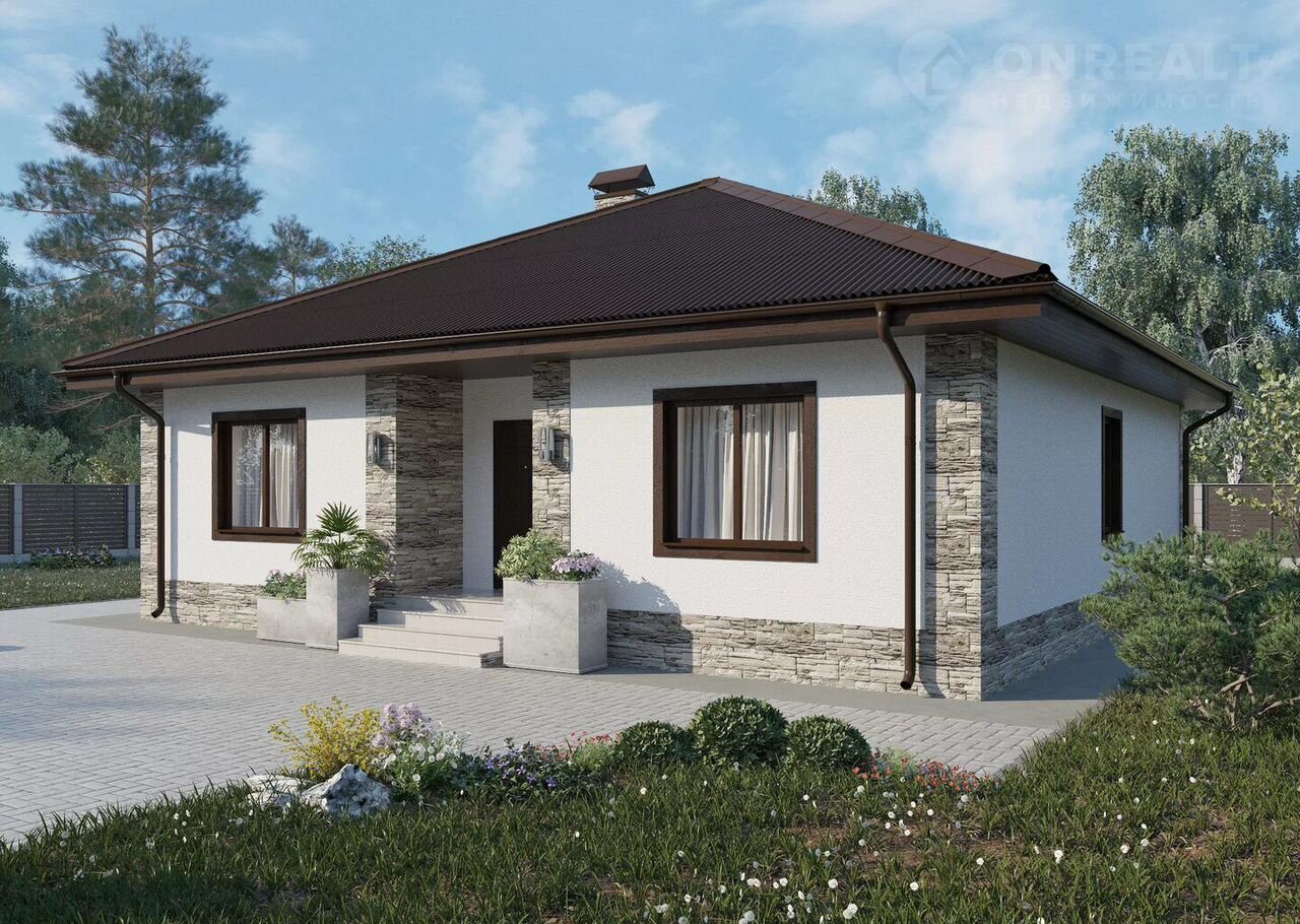 готовый одноэтажный дом без внутренней и внешней отделки(газоблок), фото из проекта, все коммуникации(электричество, водопровод,канализация,газ подведены), участок 10 соток