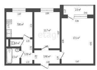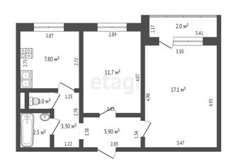 Общая площадь: 54.87 м2