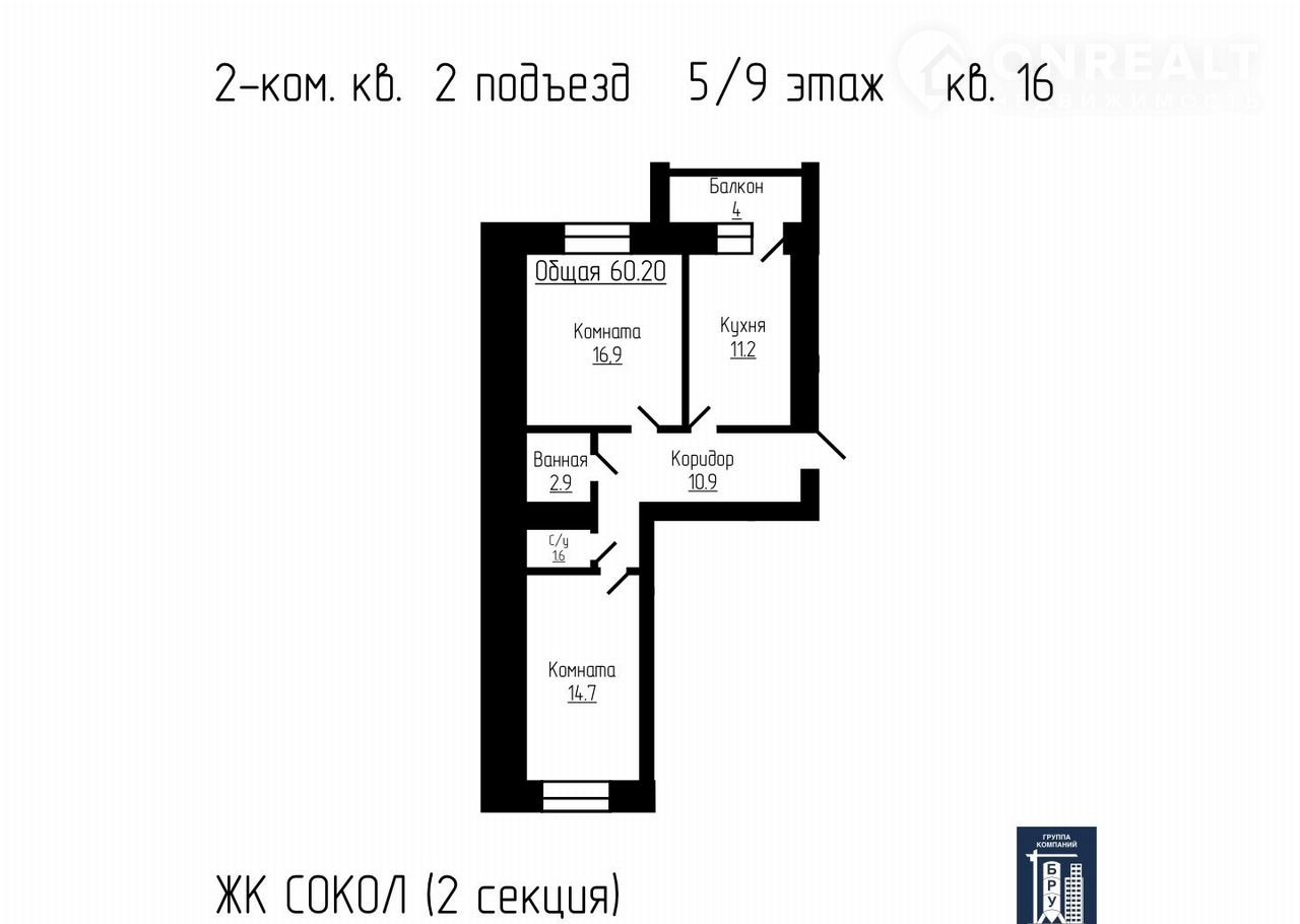 Общая площадь 60.2 м2