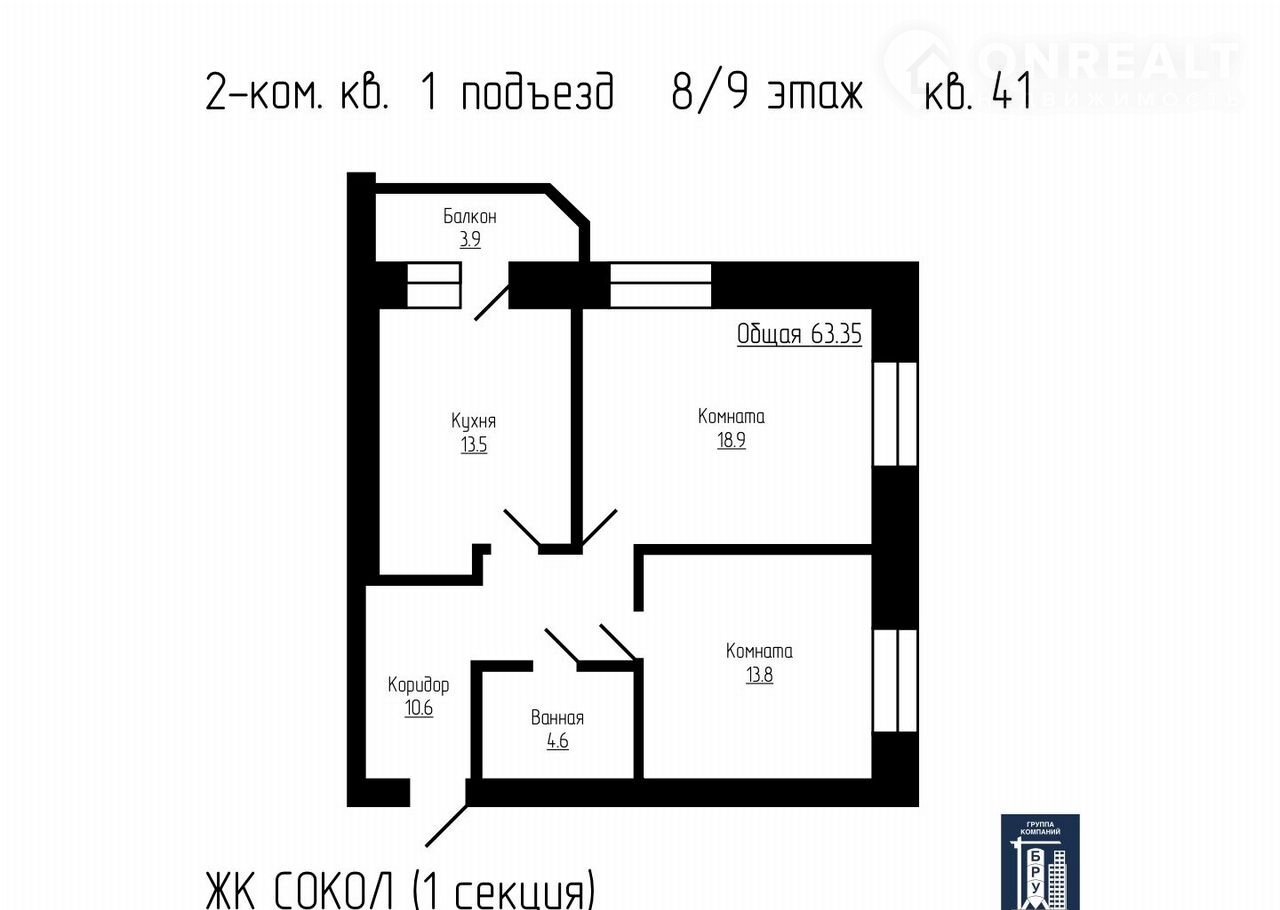 Общая площадь 63.4 м2