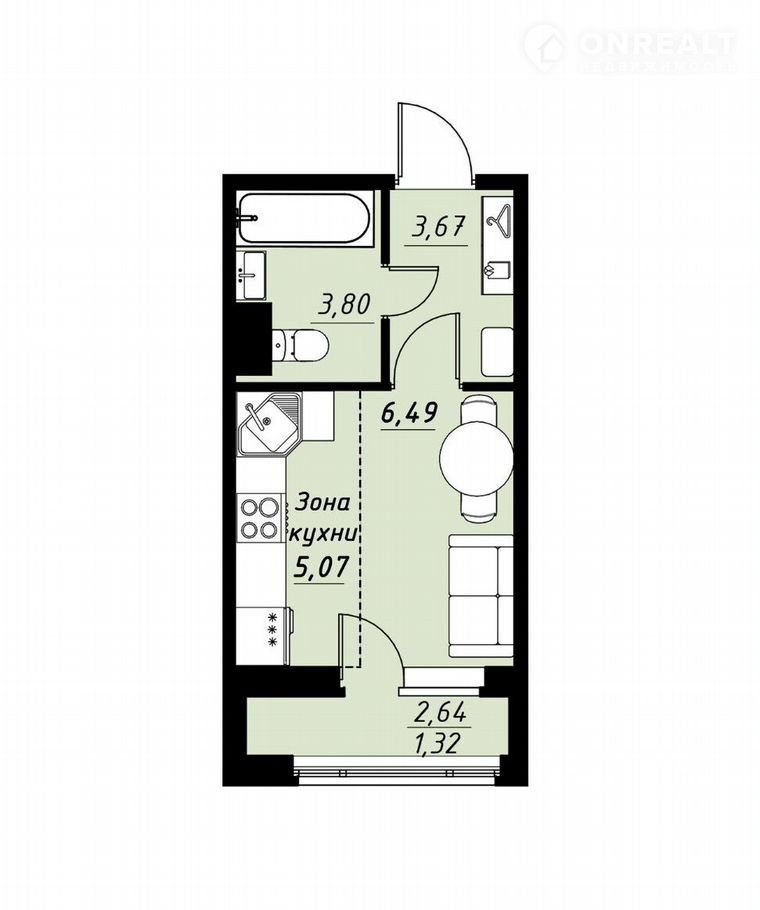 Общая площадь 20.4 м2