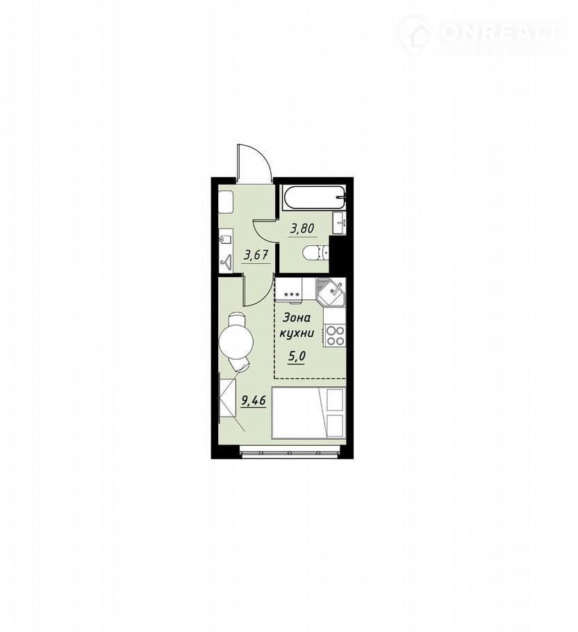 Квартира студия, 21.9 м2, этаж 4 / 9, на продажу в Тамбове