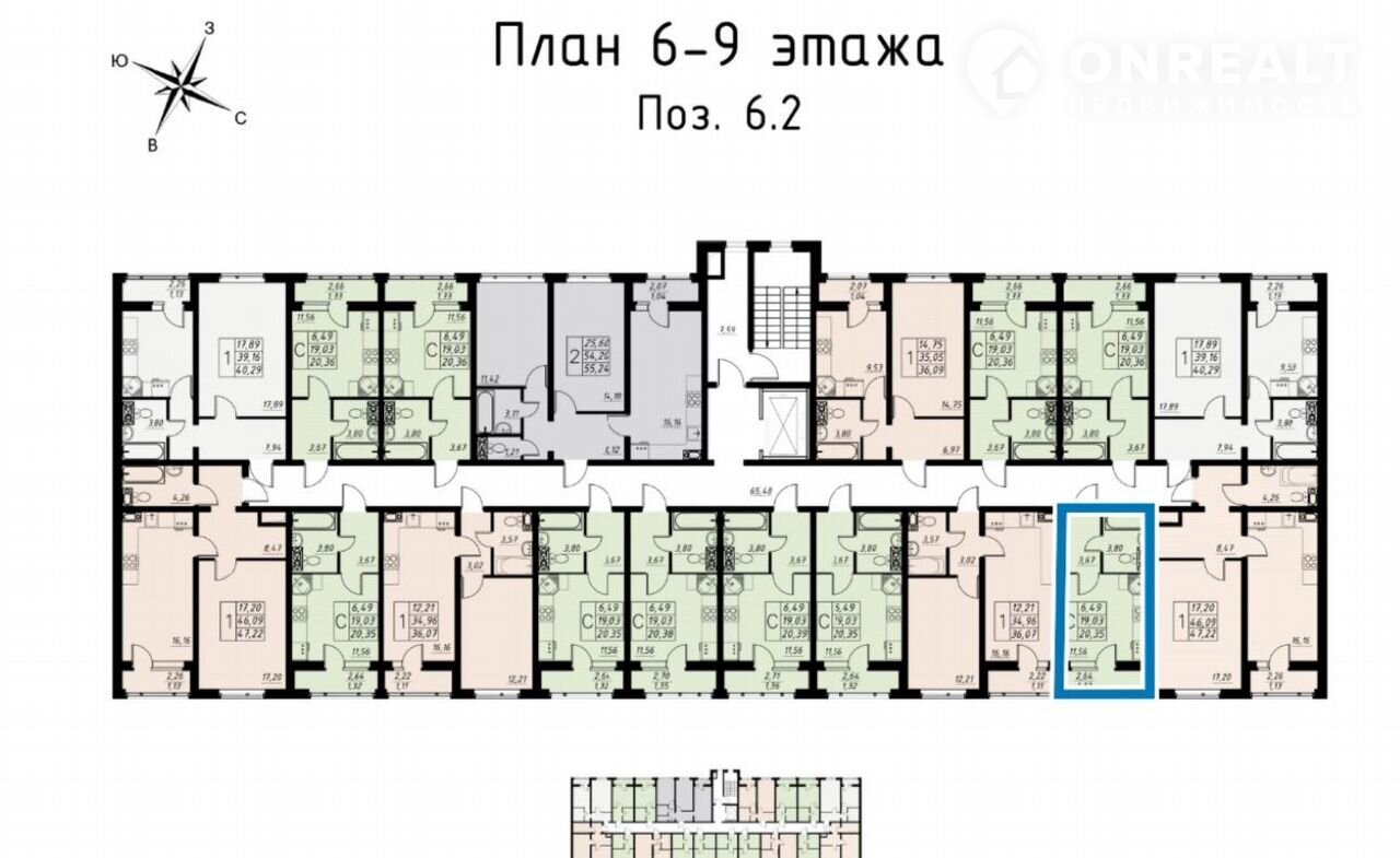 Квартира студия, 20.4 м2, этаж 8 / 9, на продажу в Тамбове, улица имени Павла Строганова, 11Д