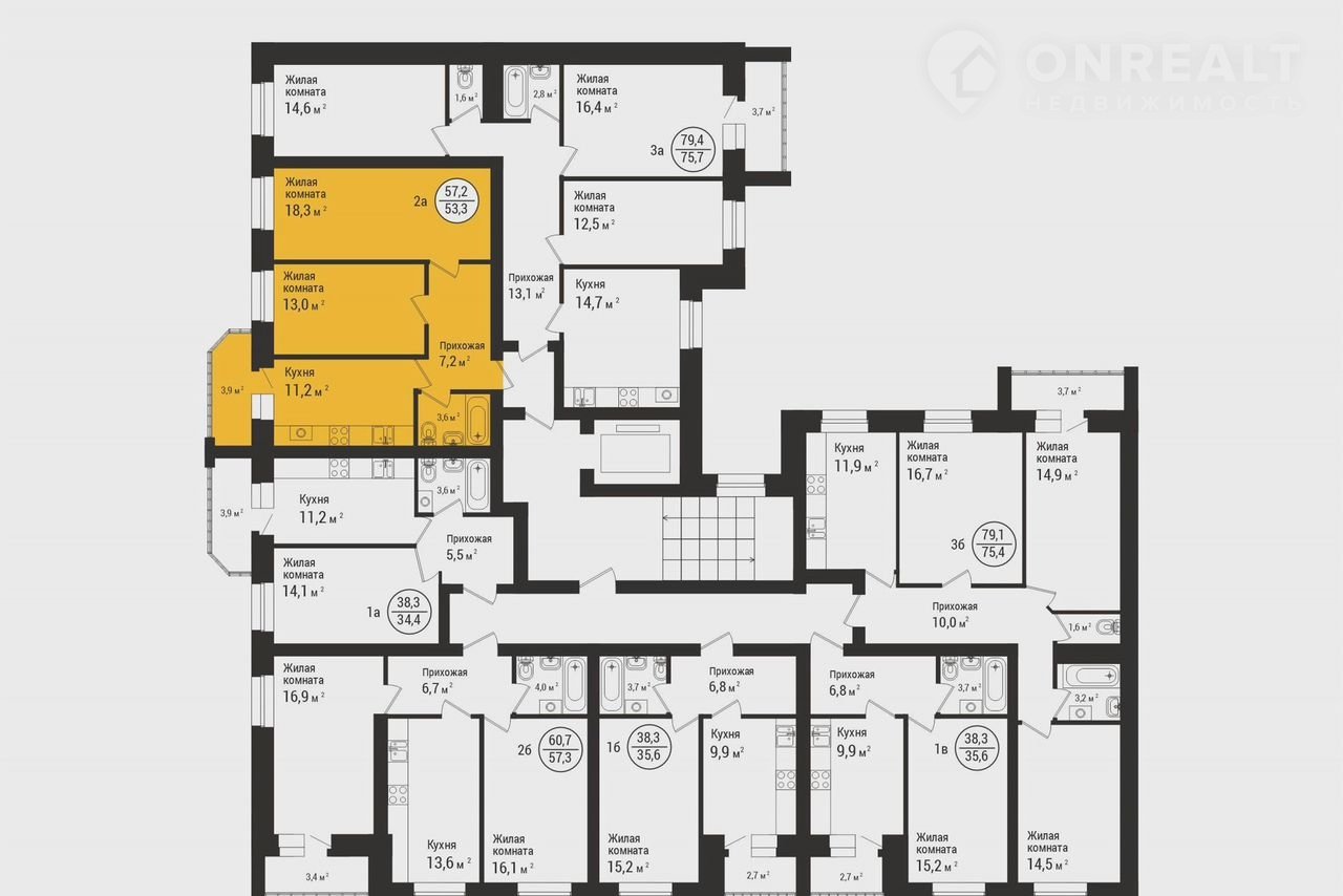 Общая площадь 57.2 м2