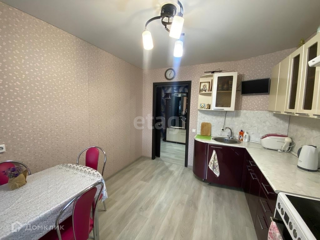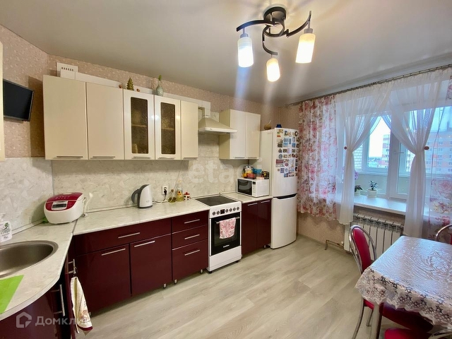 В квартире остаётся кухонный гарнитур с вытяжкой и доводчиками, сделанный под заказ, кухонный стол, плита с духовкой.