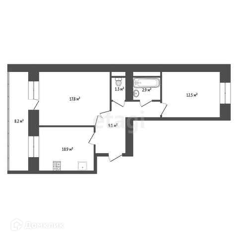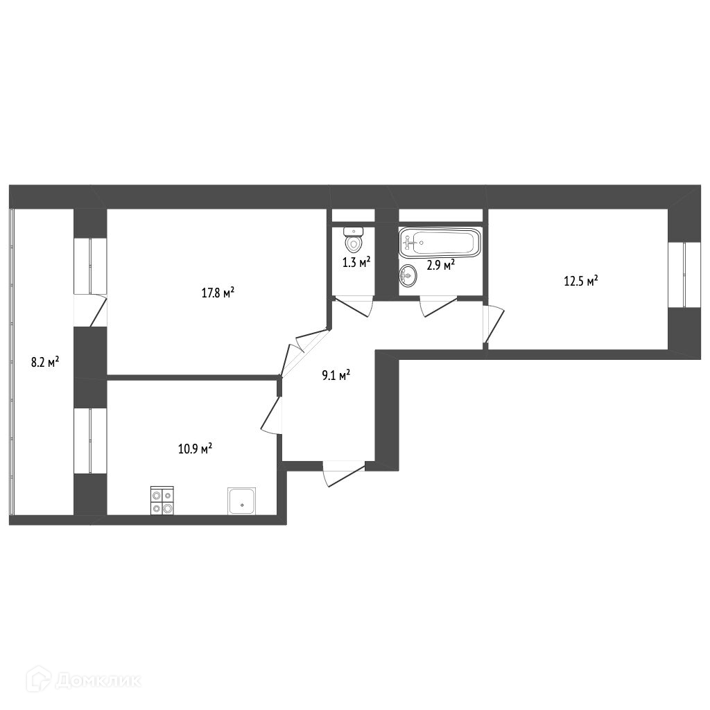 Удачная планировка - распашонка, площадью-17,8; 12,5 м² комнаты на две стороны.