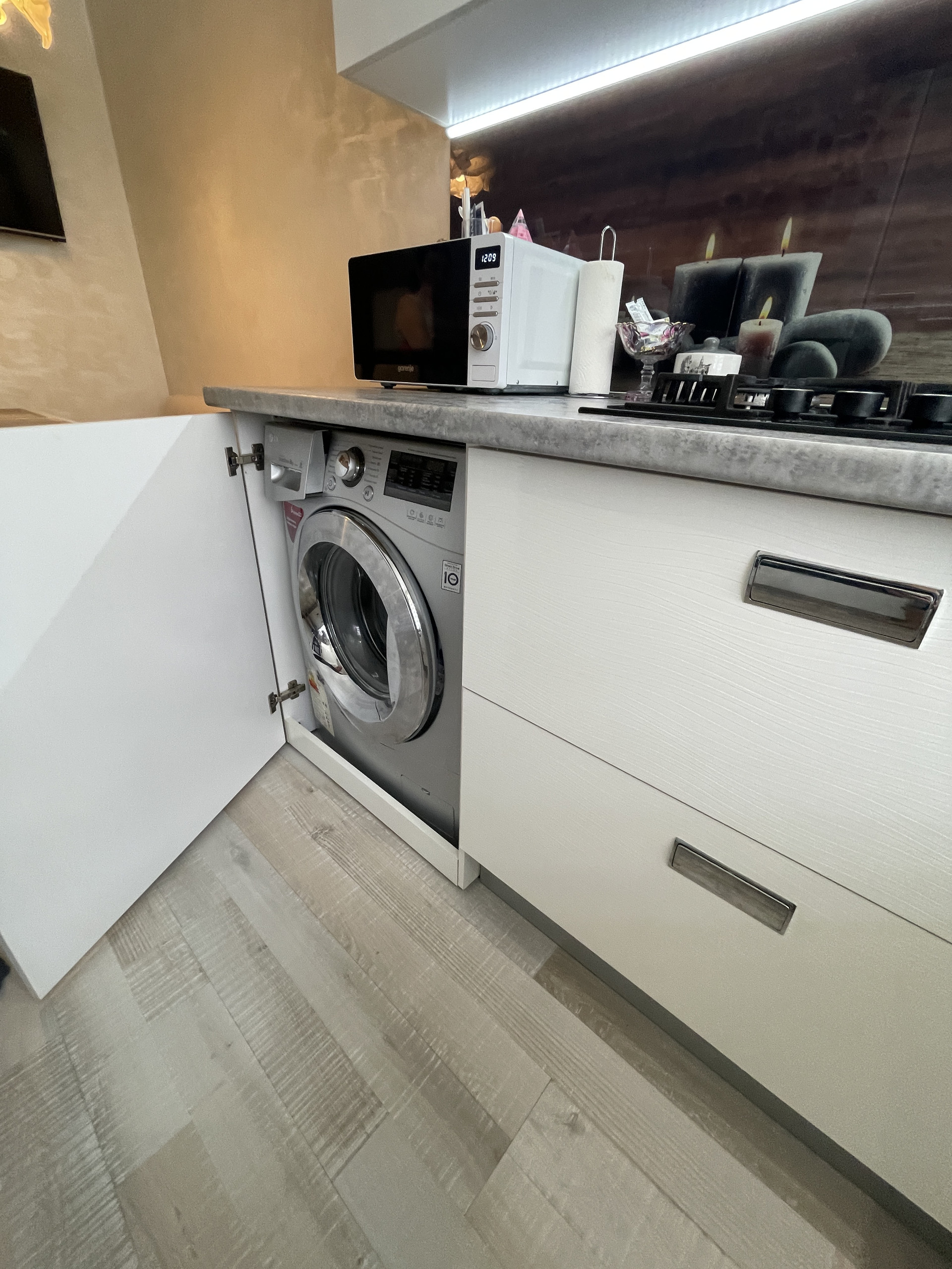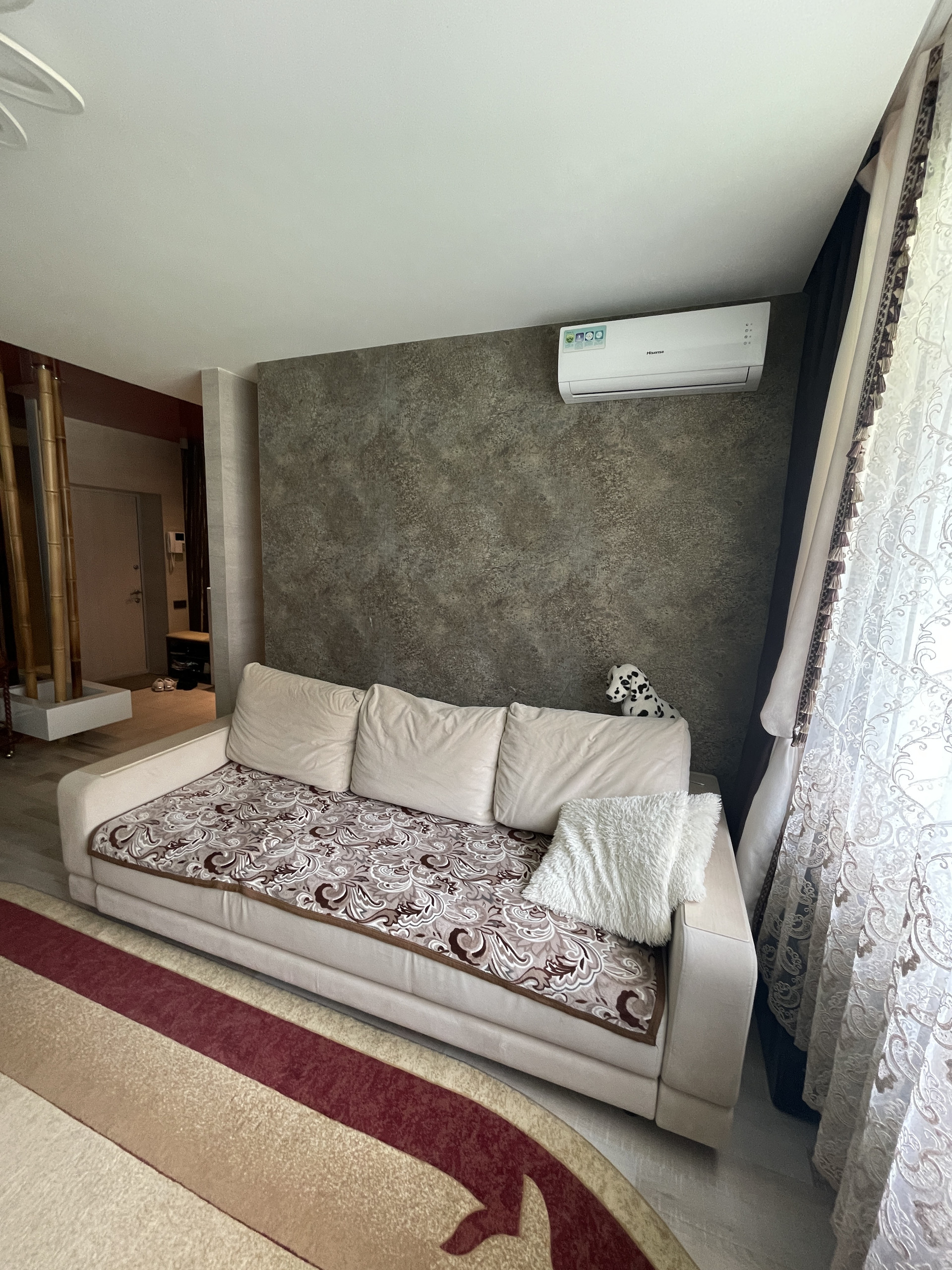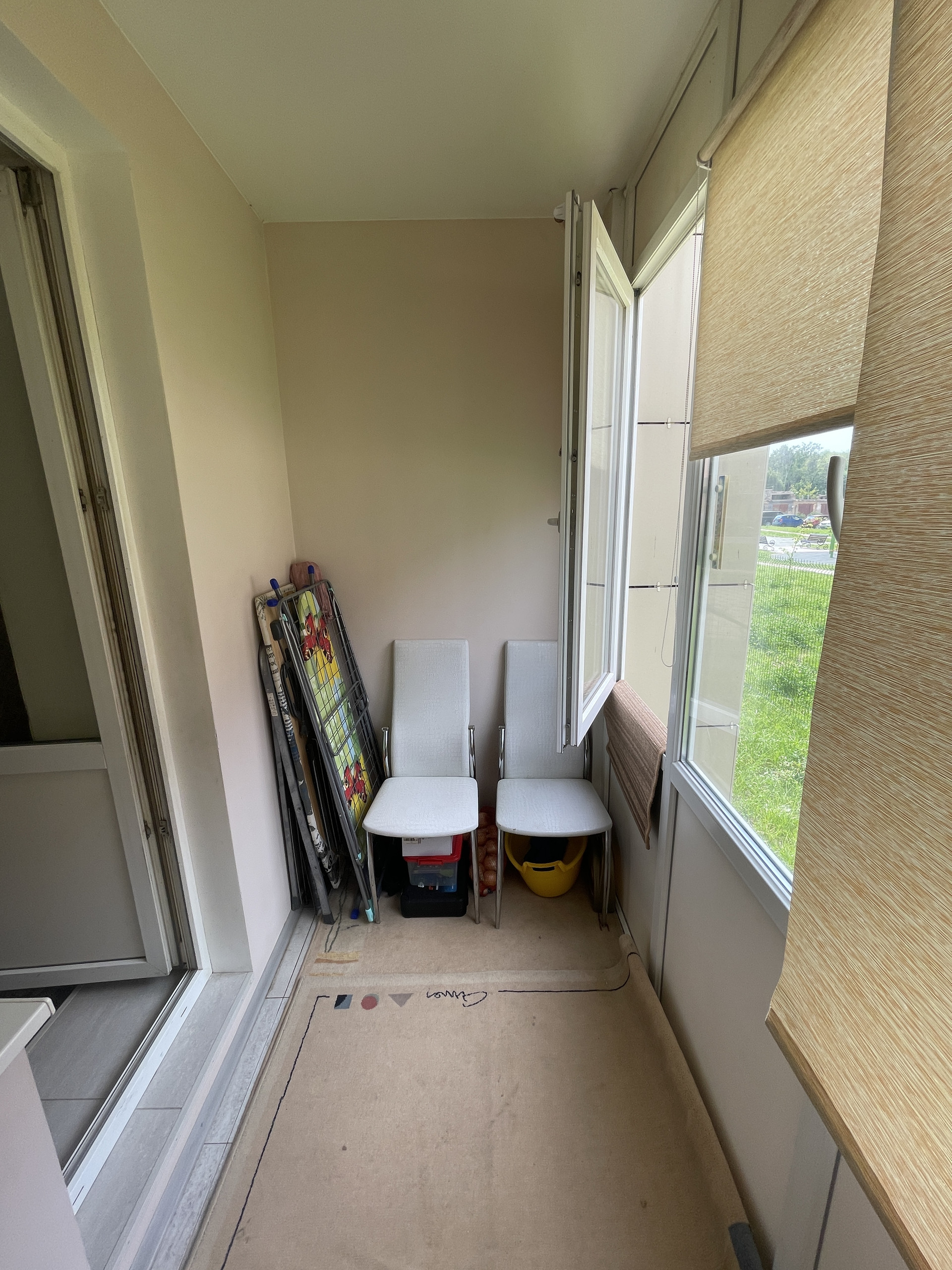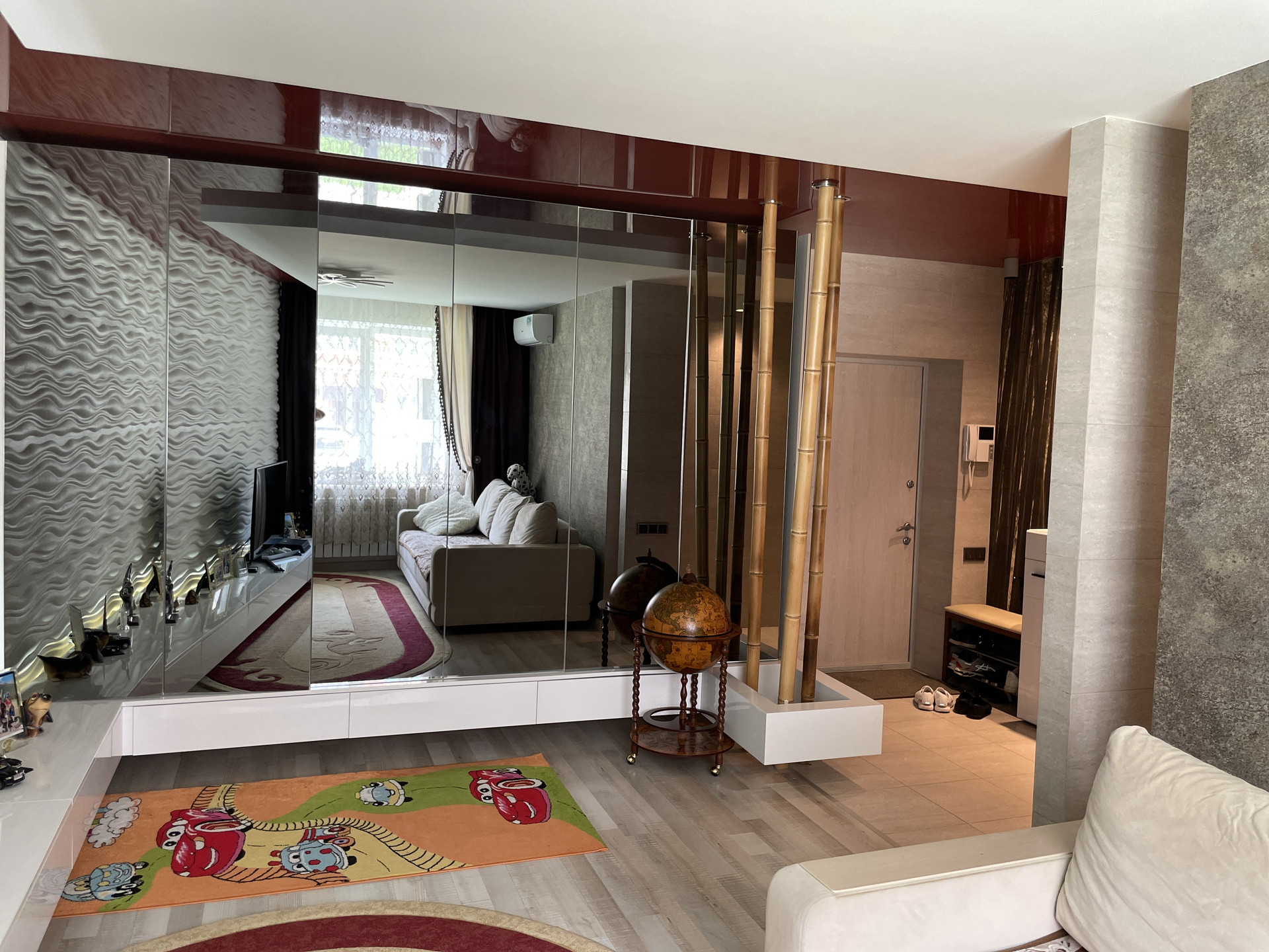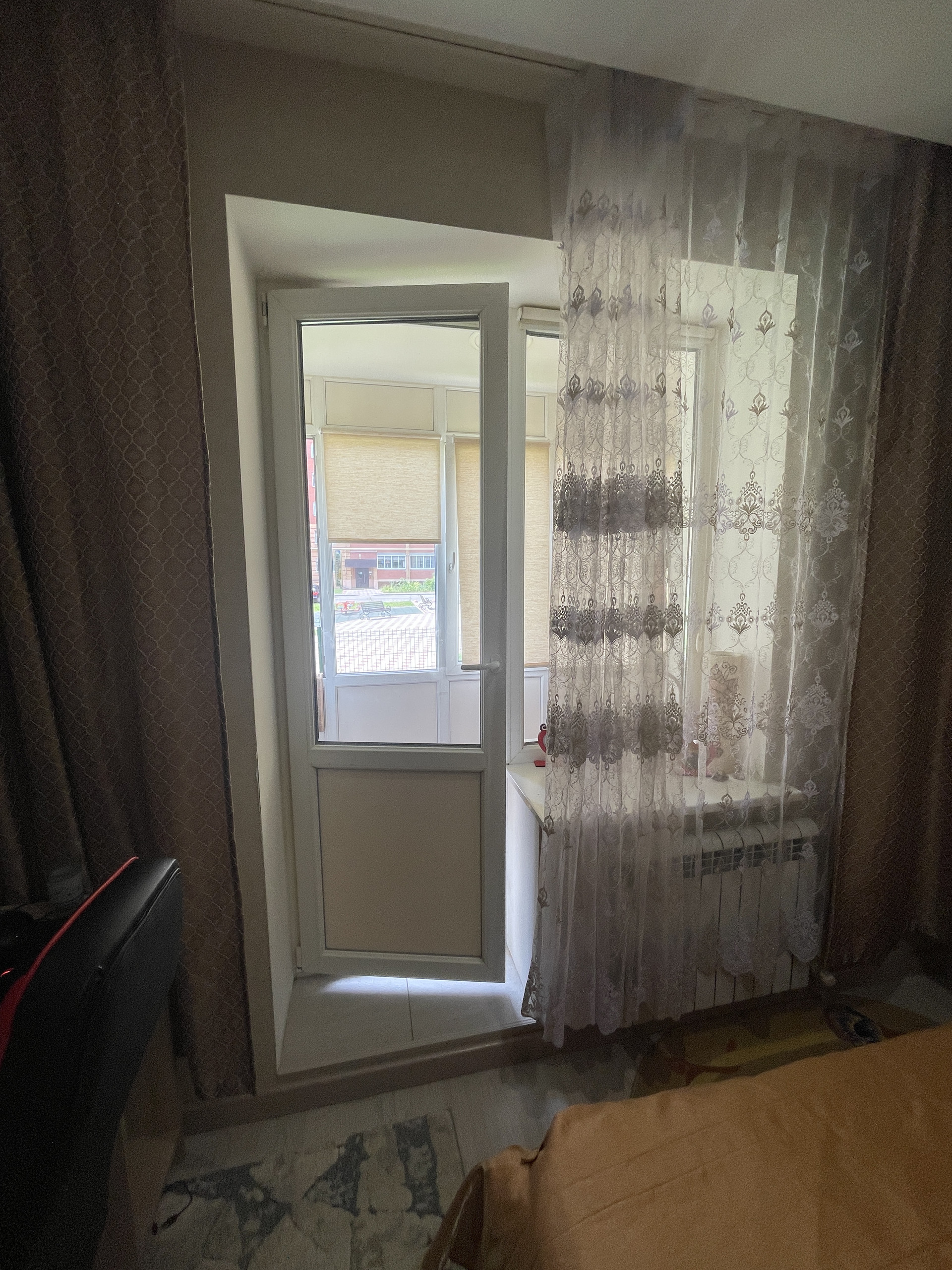 Остаётся мебель, встроенная кухня и техника. В комнатах кондиционеры. Спальня с выходом на просторную застеклённую лоджию.