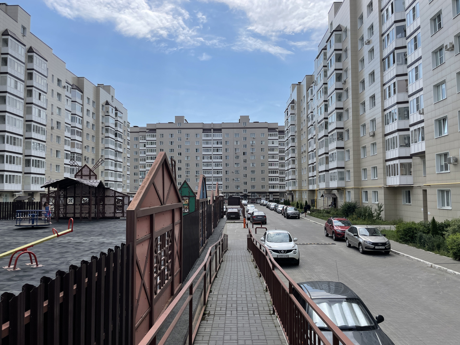Придомовая территория включает в себя детскую площадку, и, помимо большого количества парковочных мест, подземную парковку.