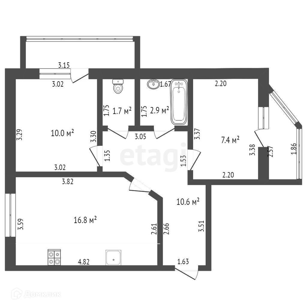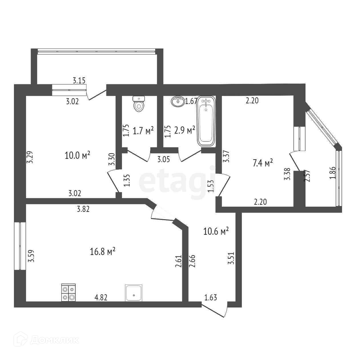 Общая площадь 49.3 м2