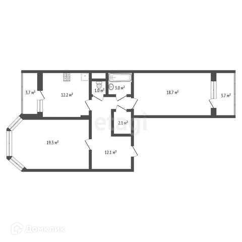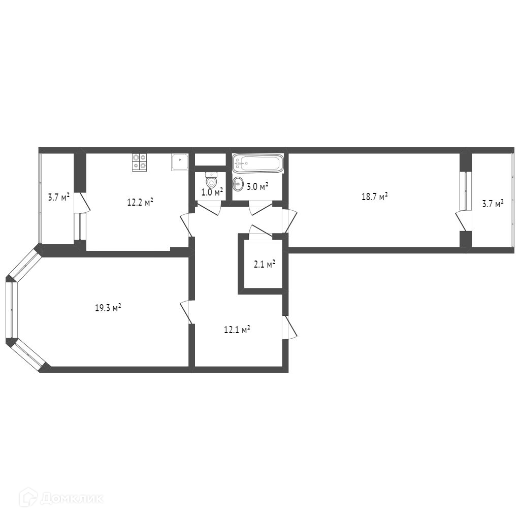 Общая площадь 69кв.м. Жилая 38,5 кв.м. Просторная кухня - 12,5кв.м., комнаты 19,3 кв.м. и 18,7кв.м.на разные стороны, прихожая 12кв.м.