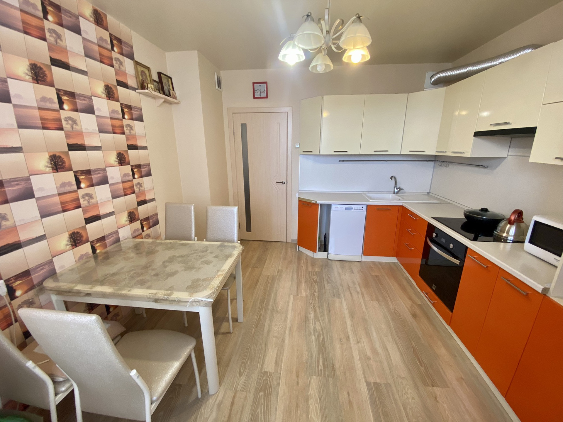 -Кухня - мечта любой хозяйки, идеальная прямоугольная форма. Имеется лоджия(с выходом из кухни). Установлен кухонный гарнитур с техникой, который остается новым жильцам в подарок.
