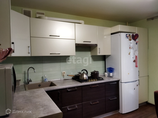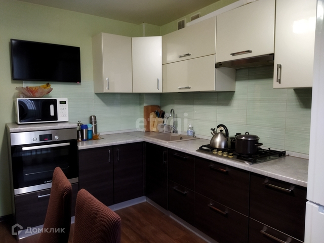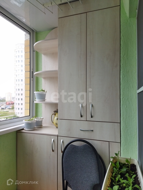 Просторная кухня, на которой не будет тесно. Установлен качественный кухонный гарнитур, варочная поверхность. Кухня установлена по размерам. Полностью отделан балкон, с зоной хранения.