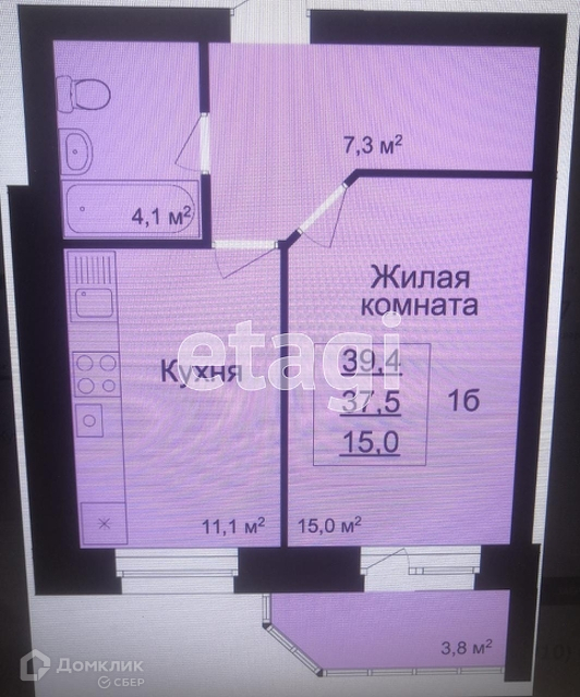 Общая площадь 39.1 м2