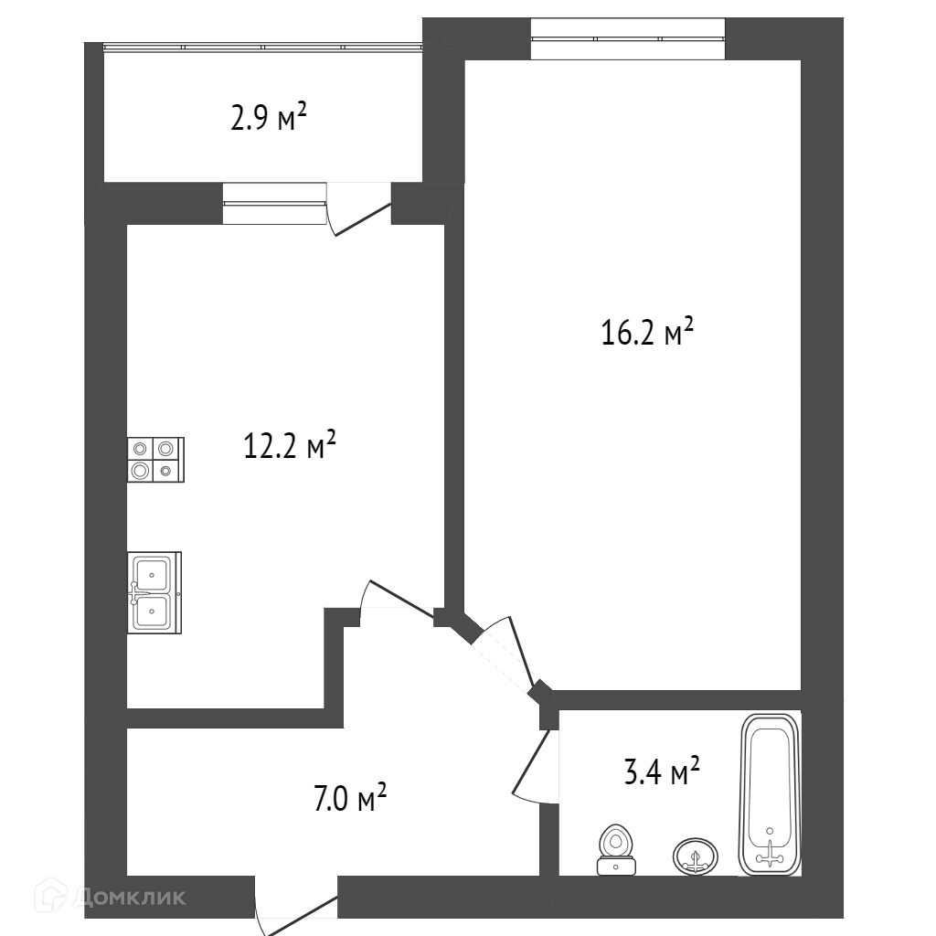 Комната 16,2 кв.м , кухня 12,9 кв.м