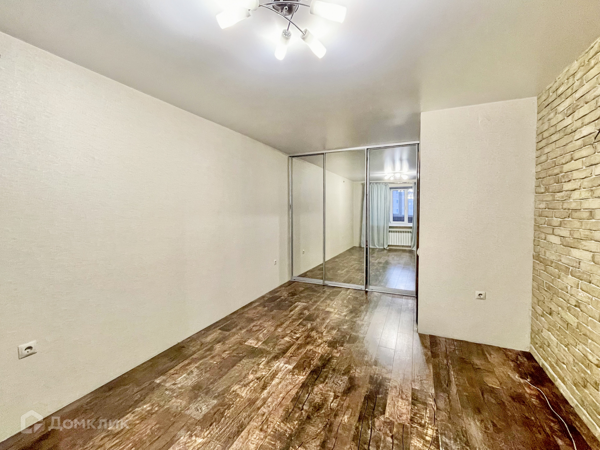 В гостиной имеется гардеробная с раздвижными зеркальными дверьми.