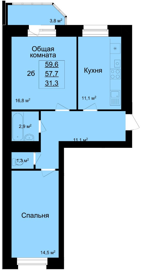 Общая площадь 63.6 м2