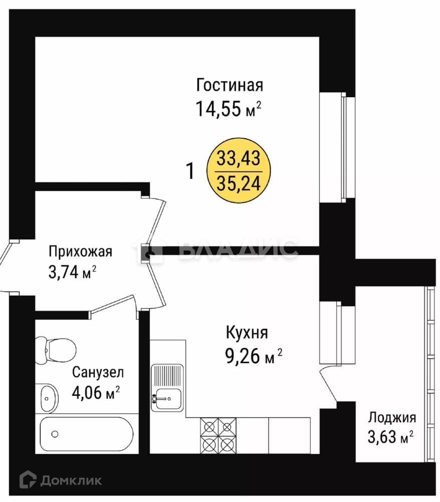 Общая площадь 35.24 м2