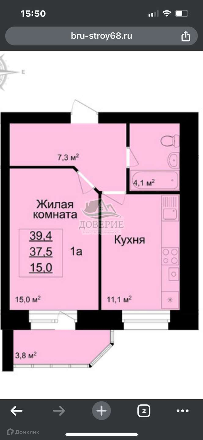 Общая площадь 39.4 м2