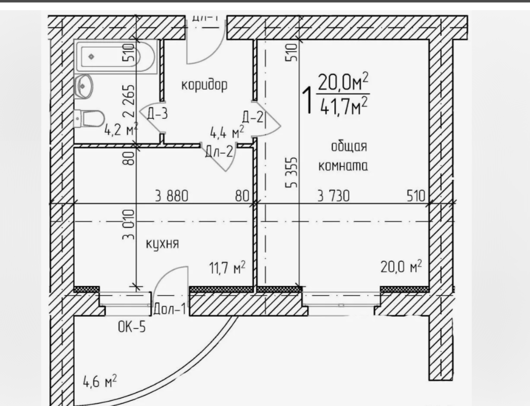 Общая площадь 41.8 м2