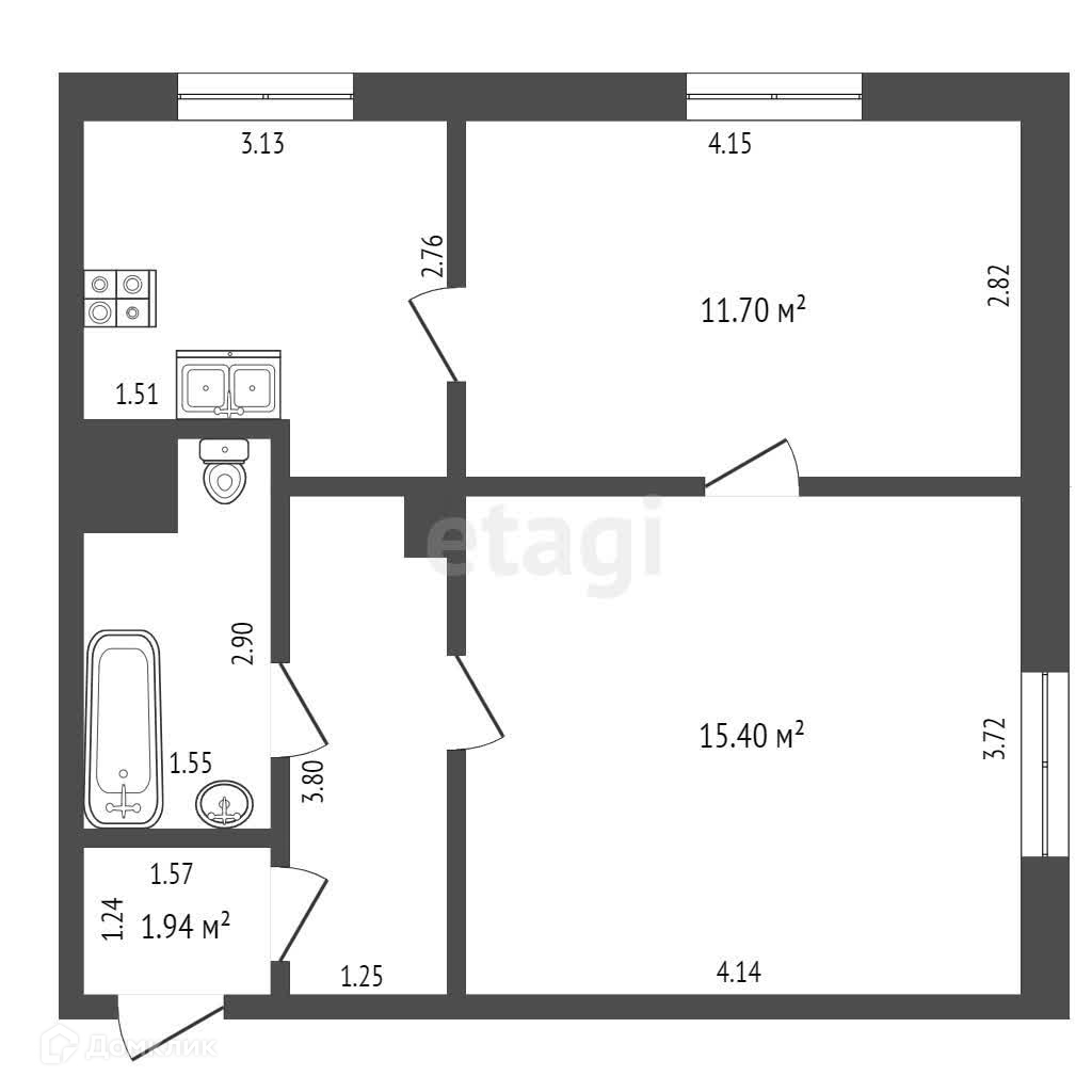 Общая площадь 45.3 м2