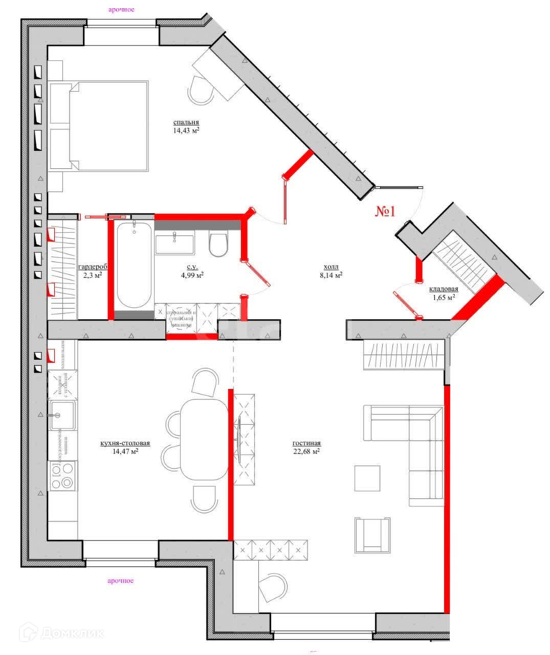 Доп. описание: санузел раздельный, пластиковые окна, в доме есть: детская площадка, закрытый двор, ворота, наземный паркинг, лифт пассажирский, черновая отделка, также имеются: телефон, интернет, кабельное телевидение, счетчики холодной и горячей воды, домофон, железная дверь