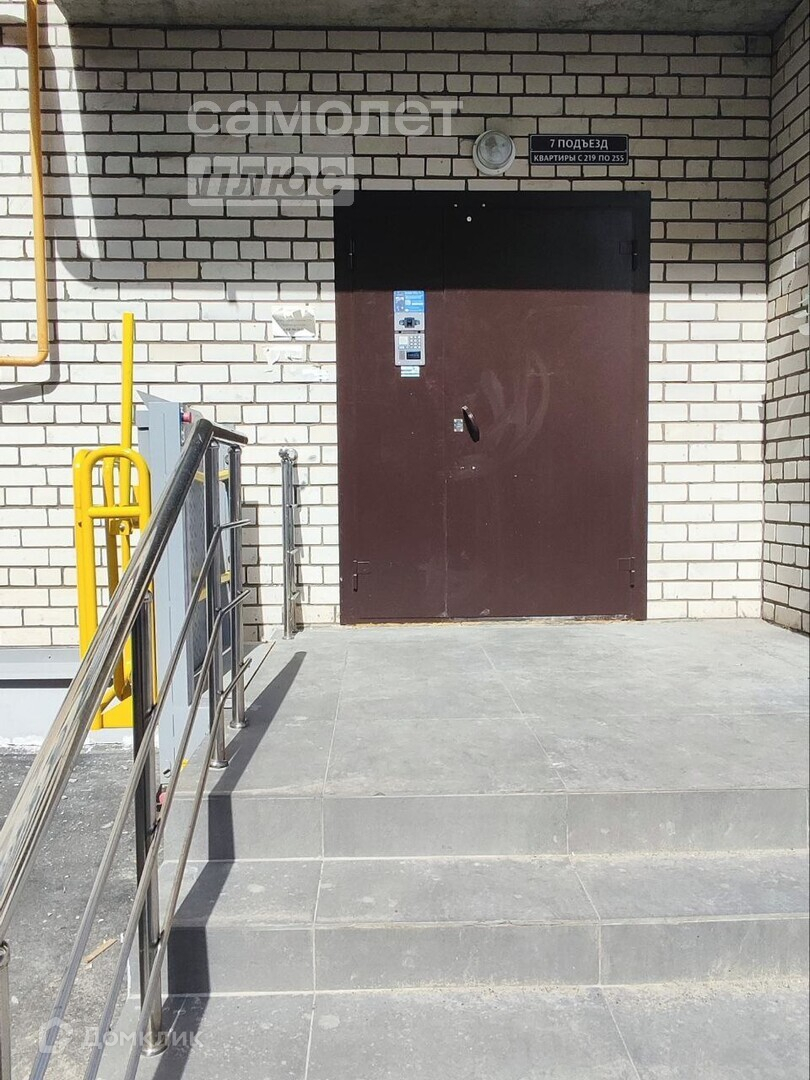 Чистый, ухоженный подъезд и обустроенный двор с детской площадкой и парковкой.