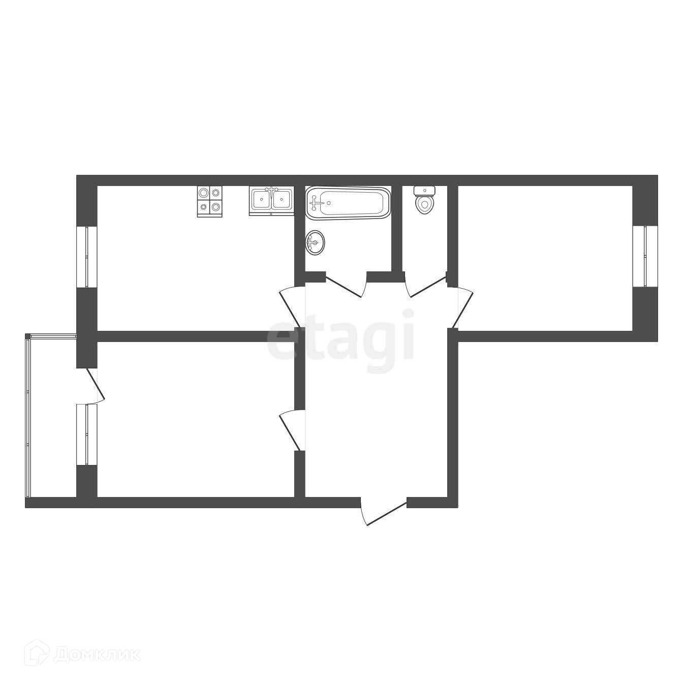 Окна выходят на две стороны.