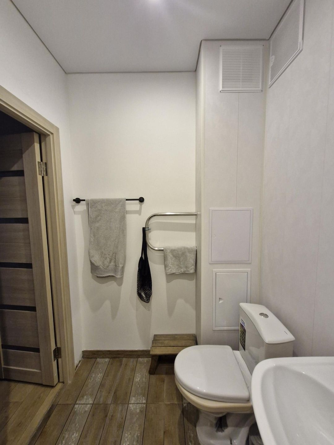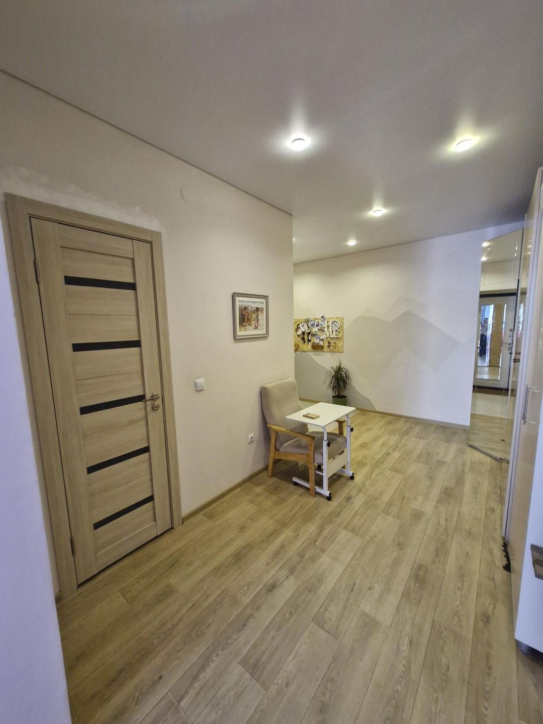 *Стены покращены, перепланировки не было. *Ванная комната - пластиковые панели, покраска. *Большой коридор.