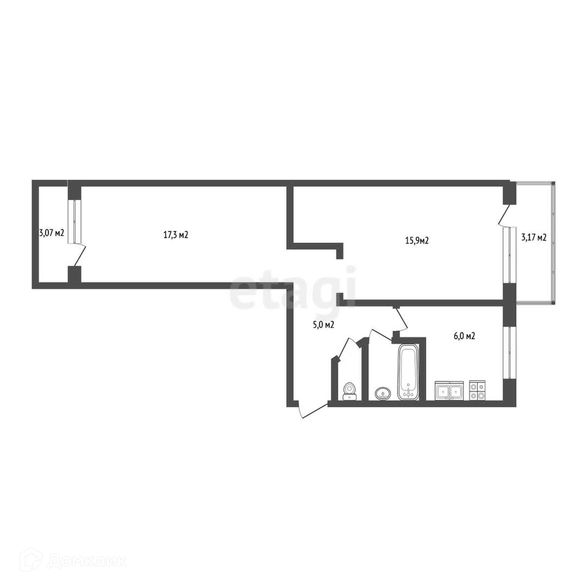 Кухня 6,0 м2, раздельный санузел (ванная комната, туалет).