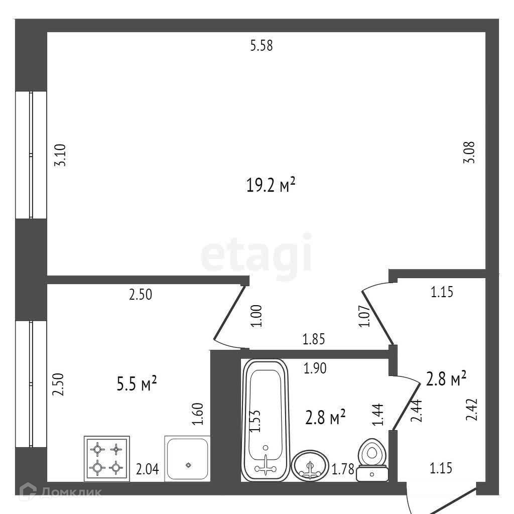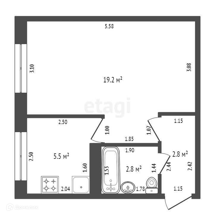 Общая площадь 30.3 м2