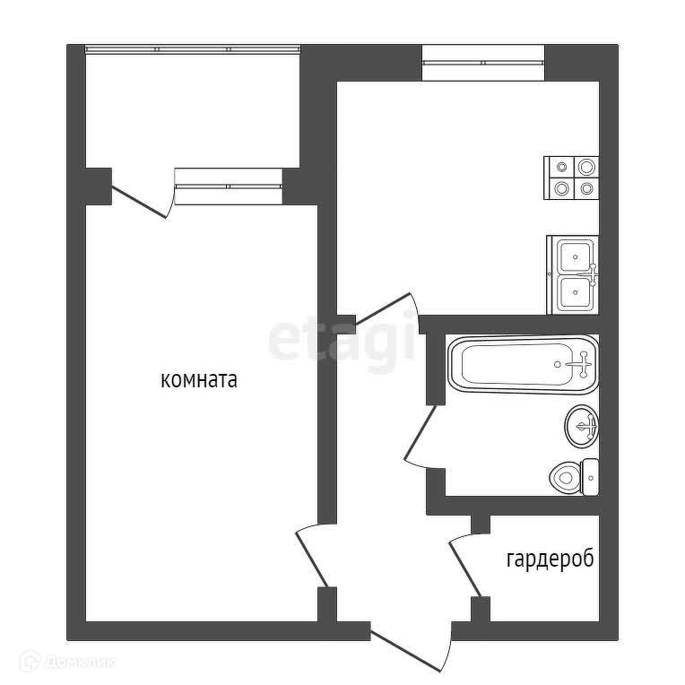 - Удачная планировка: квадратная кухня и комната.