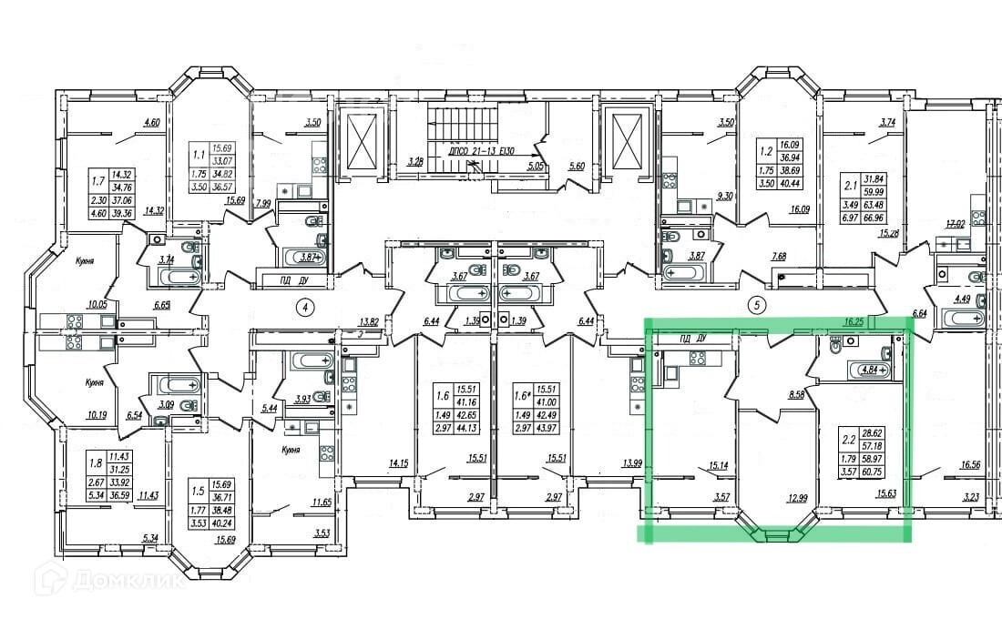 Общая площадь 60.7 м2