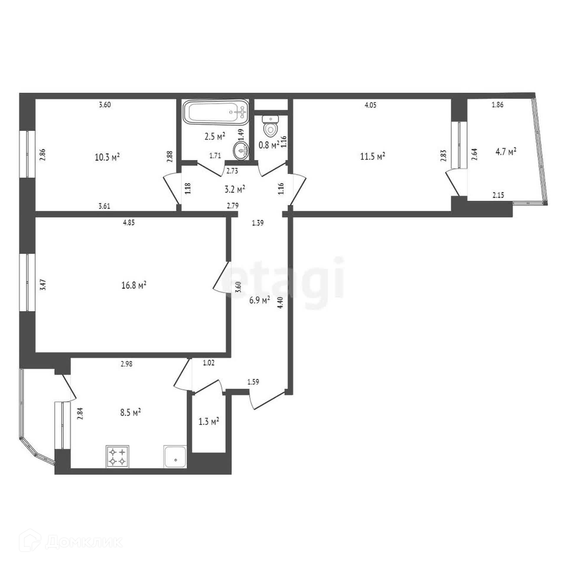 Общая площадь 61.8 м2