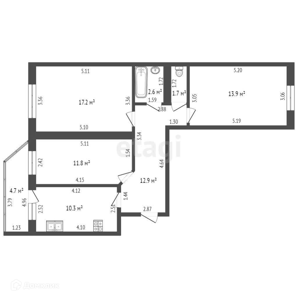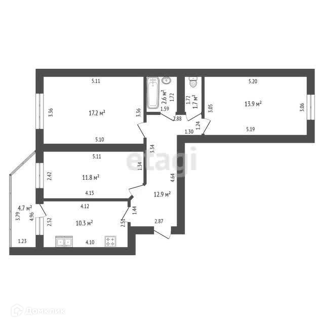 Общая площадь 72.3 м2