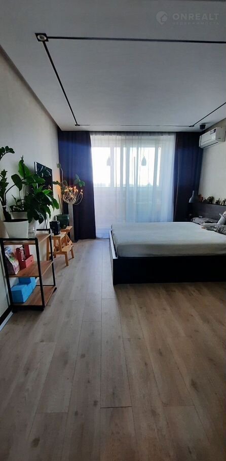 Квapтирa с современным ремонтом,  "французские окна " , в спальне остекление раздвижное.