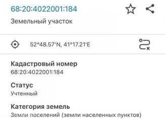 Продам участок под ИЖС по кадастровой цене. Кадастровый номер 68:20:4022004:568. |