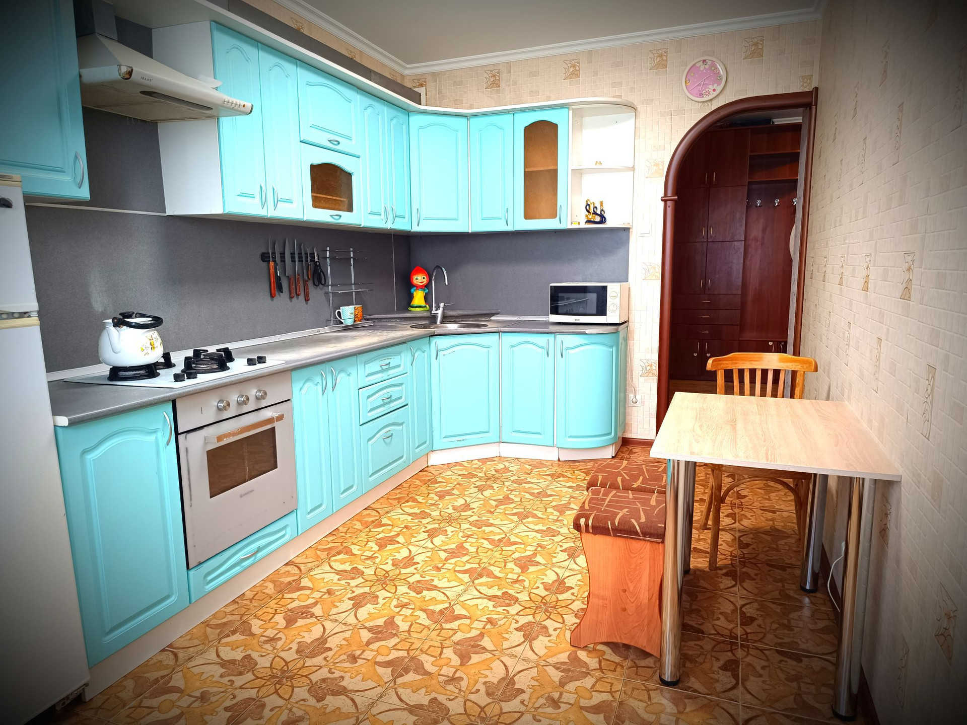 Имеется вся техника кондиционер телевизор IPTV, WIFI, стиральная машинка, холодильник встраиваемая кухонная техника, микроволновая печь, квартира очень теплая.