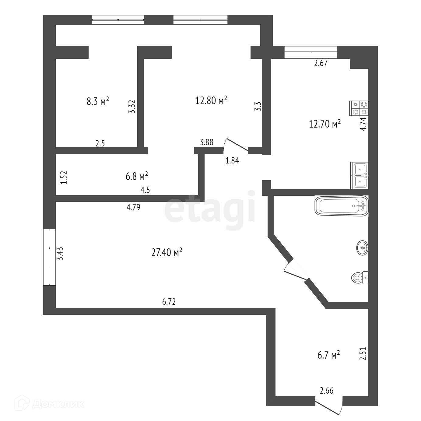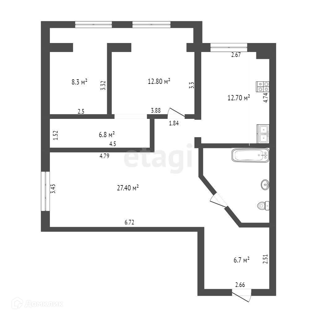 Площадь кухни 12.7 м2