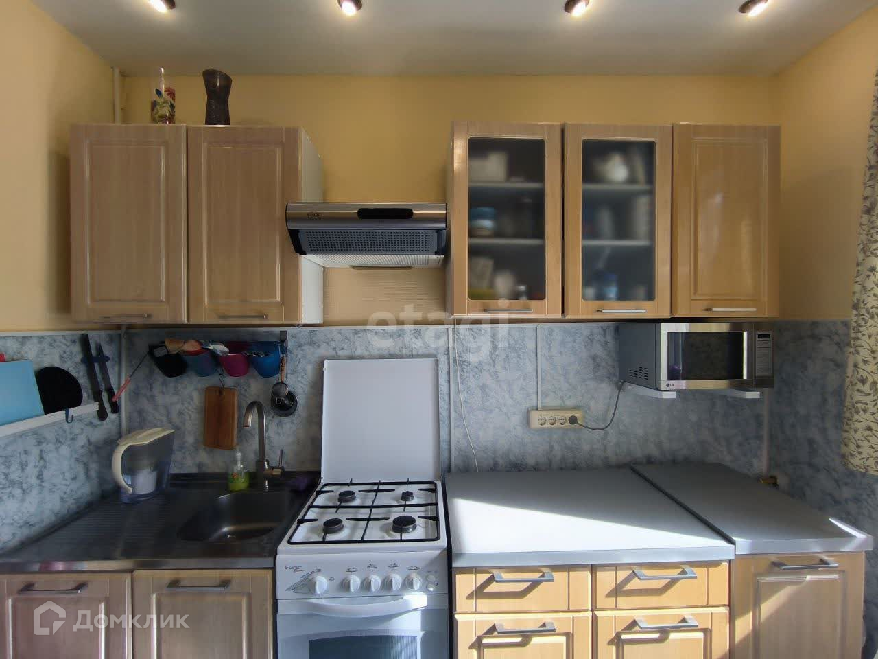 Уютная квартира, полностью укомплектованная. Вся мебель (кухонный гарнитур, диван, кровати, шкафы, столы) и техника (стиральная машина, посудомоечная машина, холодильник, микроволновка, газовая плита) остаются покупателям. Санузел разделённый. Свет, газ, холодное водоснабжение — по счётчику, отопление — по тарифу. Тихие соседи.