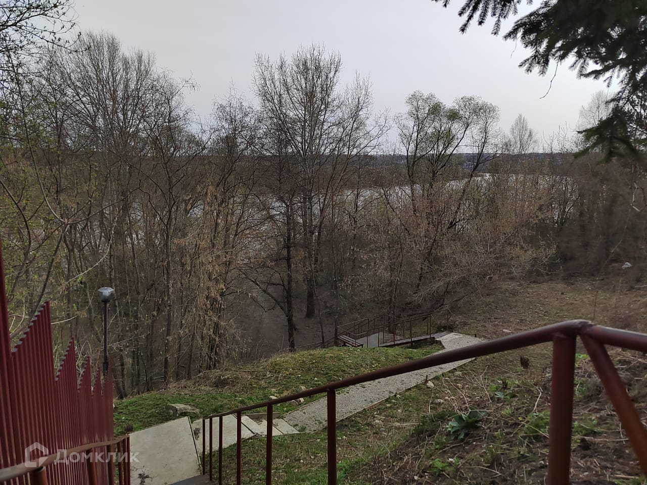 Находится на берегу реки Ока 1 линия, есть выход на Оку.