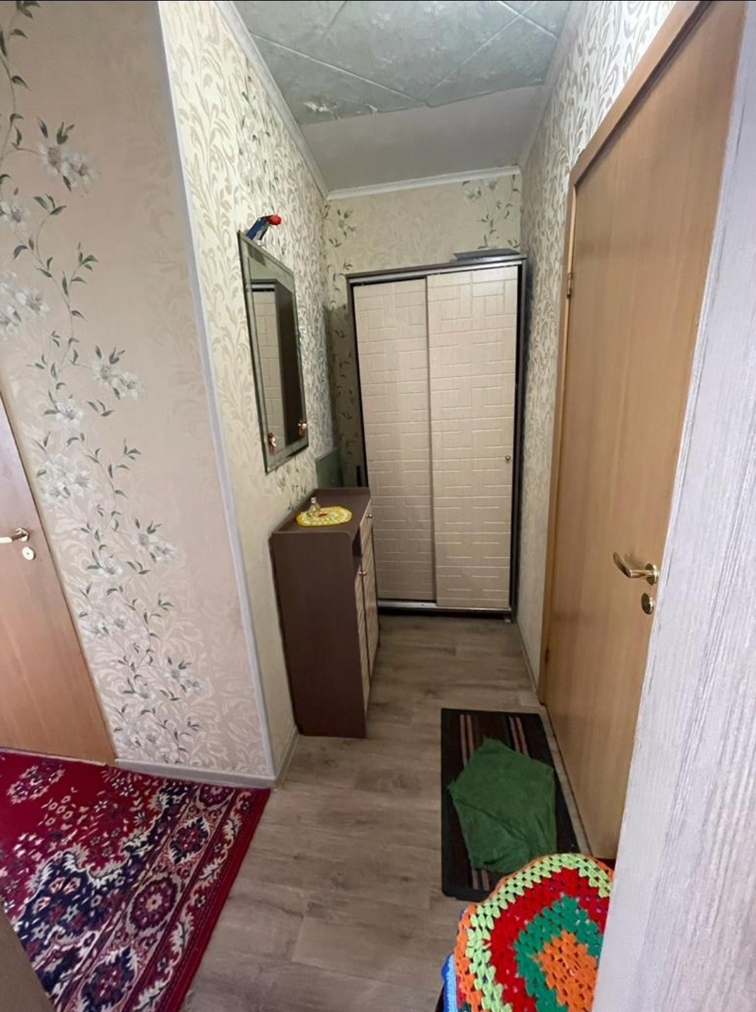 Квартира с ремонтом, заходи и живи! Я собственник!! Квартира очень чистая и светлая. В 2021 году проведен косметический ремонт. Заменены трубы коммуникации, установлены новые радиаторы. Стены в квартире оклеены обоями., потолок в коридоре и кухне — потолочные плиты, в комнате — натяжной., пол в комнате — ДВП, на кухне и коридоре - линолеум. Окна качественные деревянные, выходят на западную сторону. Балкон застеклен.
