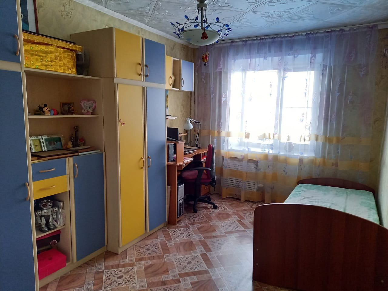 Везде линолеум, в одной спальне ковролин.