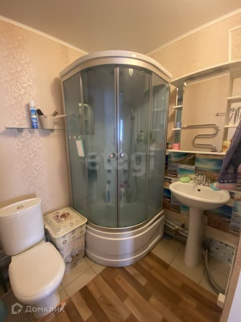 В квартире сделан хороший ремонт. Пластиковые окна, натяжные потолки, на полу линолеум. Санузел совмещен, установлена душевая кабина, также установлены счетчики учета водоснабжения. В коридоре встроенная гардеробная комната.