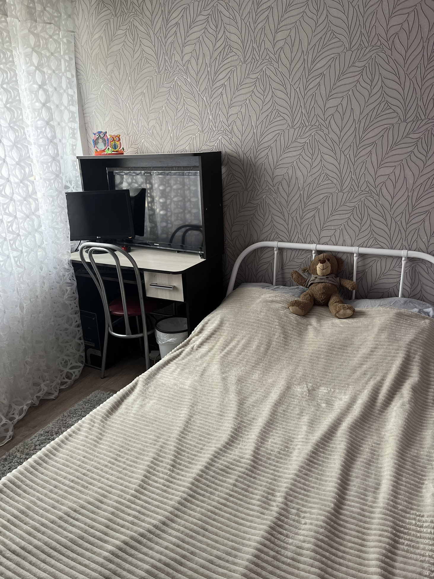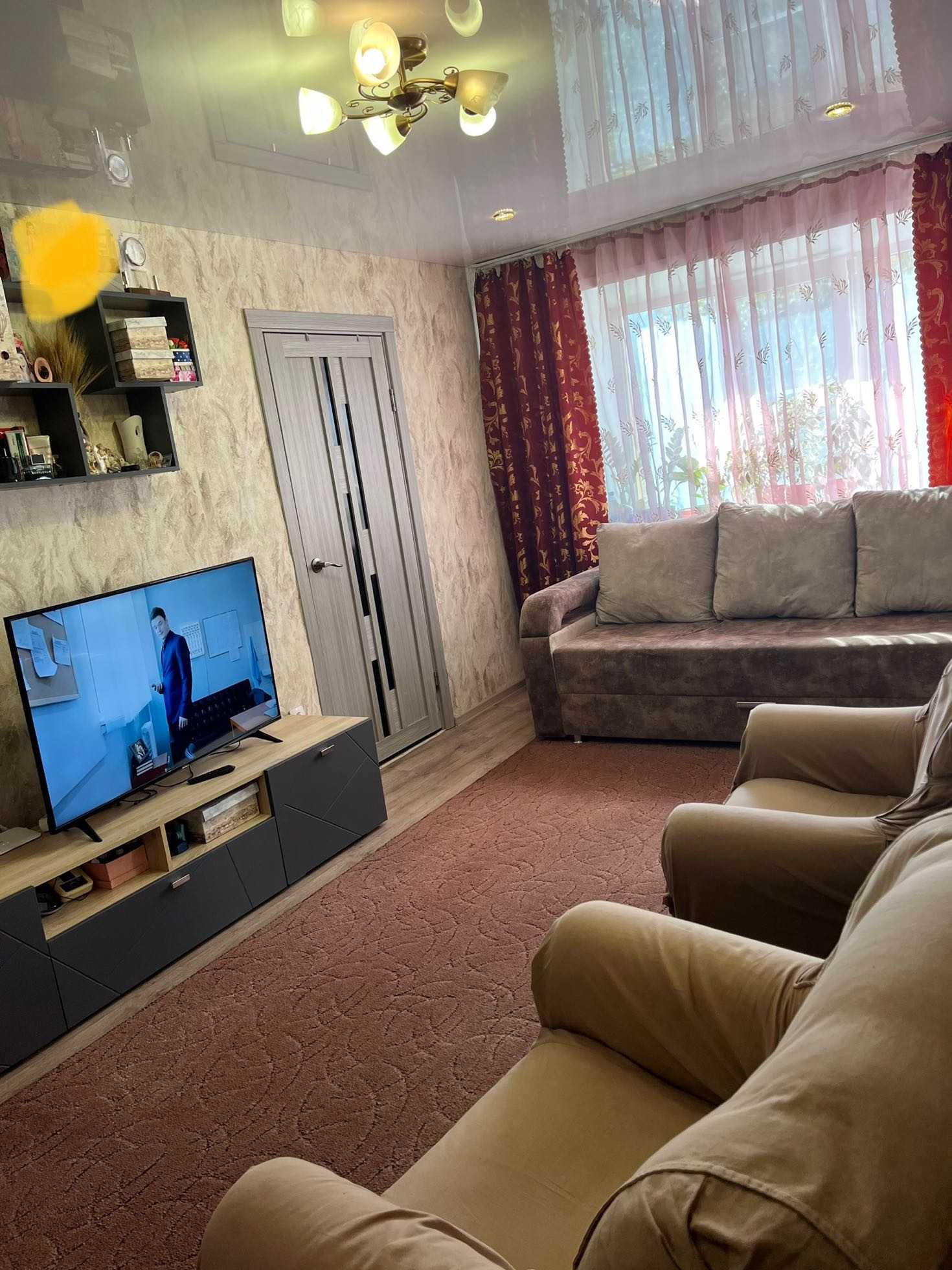 4й этаж,на площадке четыре квартиры,в подъезде чисто,сделан ремонт, домофон. Дружелюбные, тихие соседи.Две комнаты и спальня,разделенная на 2 части.В квартире сделан ремонт,потолки натяжные, на полу линолеум.Санузел совмещенный.В шаговой доступности вся инфраструктура.Кухонный гарнитур остается,остальная мебель по договоренности.