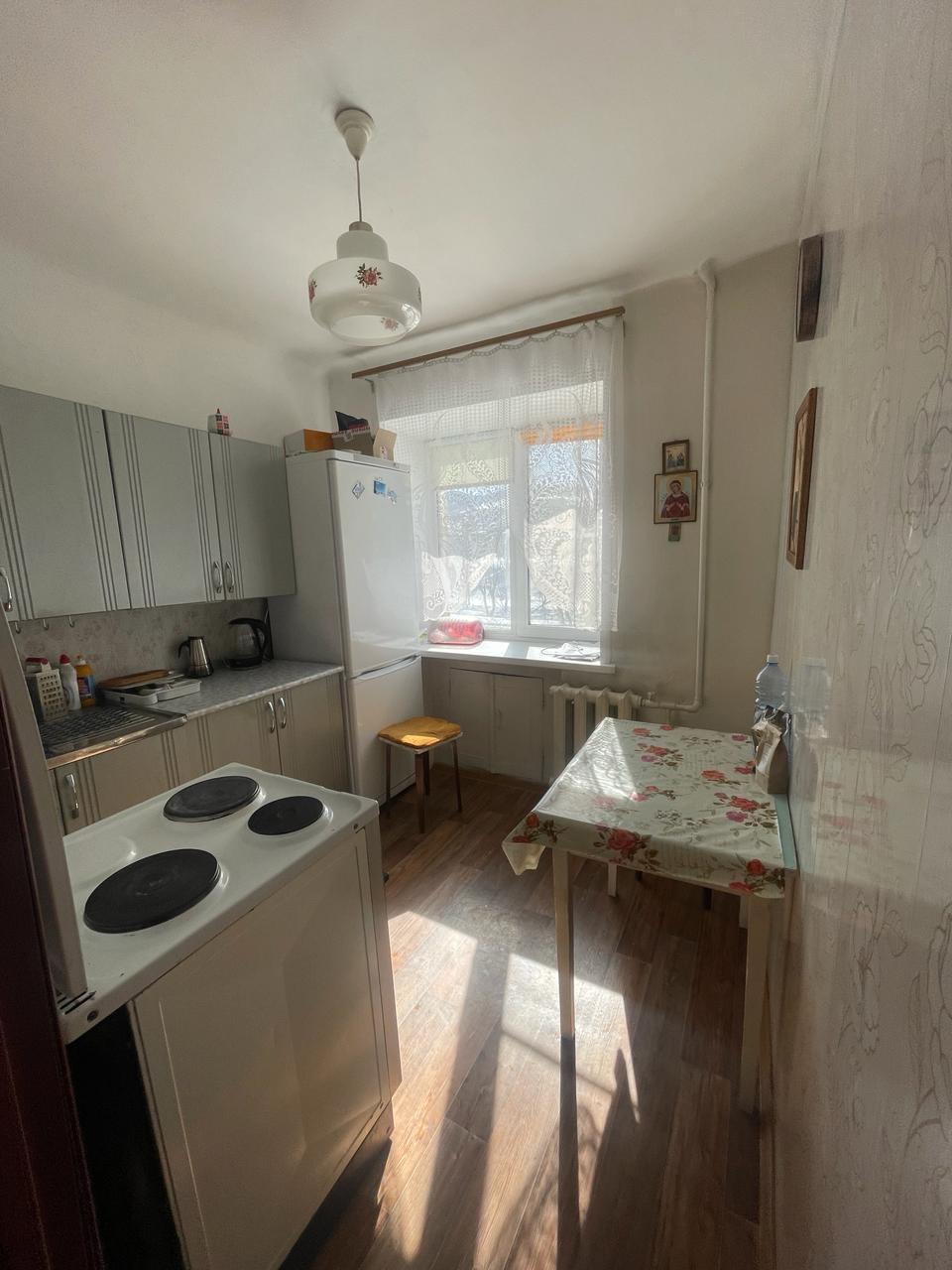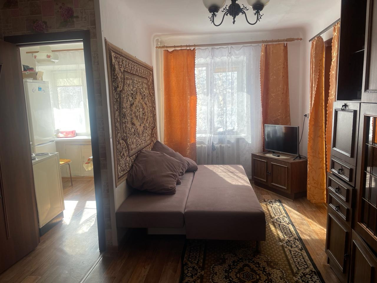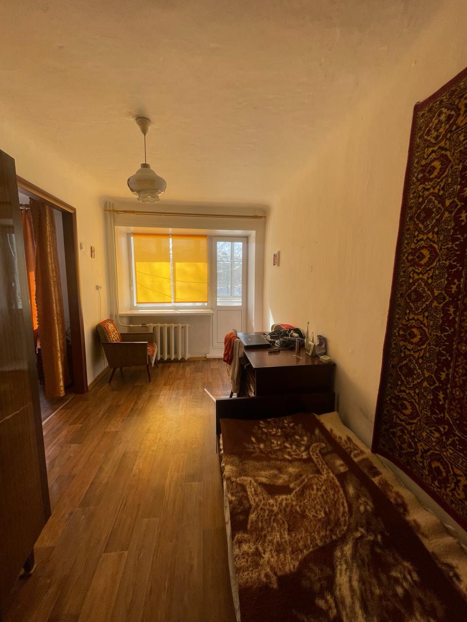 Продается 2-комнатная квартира, на полу линолеум, окна пластиковые, балкон застеклен. Ухоженный двор, есть место для парковки.