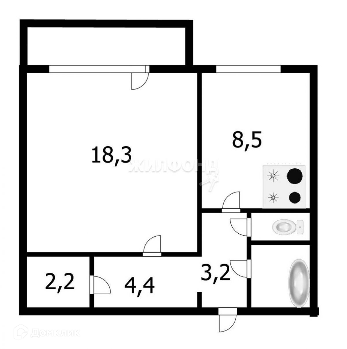 Жилая площадь 18.3 м2