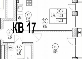 Продается двухкомнатная квартира, 34.8 м2, улица Рустема Яхина, 5