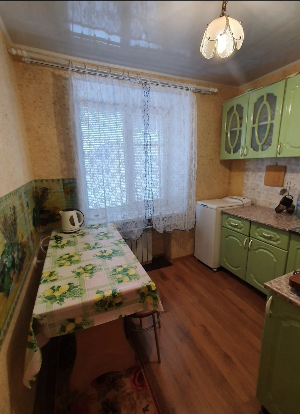Продается 2-х комнатная благоустроенная квартира для счастливой семьи.  Очень теплая, чистая и уютная. В квартире солнечно в любое время года.  Есть водонагреватель( на случай отключения горячей воды).  Балкон застеклен (пластик).  Пластиковые окна,  сейфовая дверь. Если у вас дети,  то рядом с домом детский сад, который видно в окно.  Вам не понадобится тратить много время перед работой,  чтобы попути отвести ребёнка в детский сад. В шаговой доступности школа.  За домом автобусная остановка.  Около дома магазины Пятёрочка и Магнит, не далеко аптека и магазин женской одежды. Ваша семья любит спорт? Для прогулок недалеко от дома есть парк,  около школы  обородована спортивная площадка для пробежек летом и катания на лыжах зимой. В квартире остаётся шкаф- встроенный,  диван,  кресло,  комод. Кухонный гарнитур,  стиральная машина,  обеденный стол,  холодильник. Вам даже не понадобится покупать шкаф и зеркало в прихожую,  так как мебель в прихожей тоже остаётся вам. Жалюзи на всех окнах. И все это входит в стоимость.