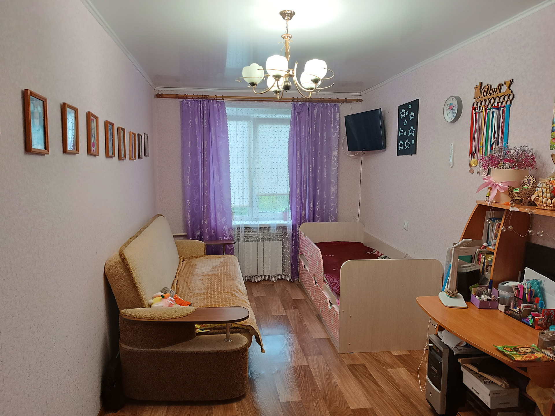 При продаже остается кухонный гарнитур, диван, шкаф-купе.